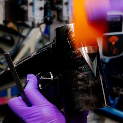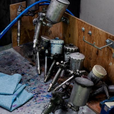 A durable powder coat base is the foundation for a one-off, hand-painted finish. Steel wool masking adds raw, organic texture and unique design variations.
