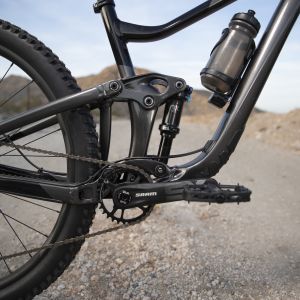 Integrated shock mount produces a lower leverage ratio for increased pedaling and braking efficiency, plus a lower center of gravity and shorter chainstays for improved handling, climbing and agility.
