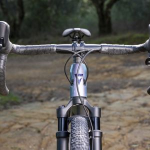 Composite frameset is designed specifically for front suspension. With 40mm of travel, the fork absorbs bumps and impacts so you can ride smoother and faster over rugged gravel and dirt.