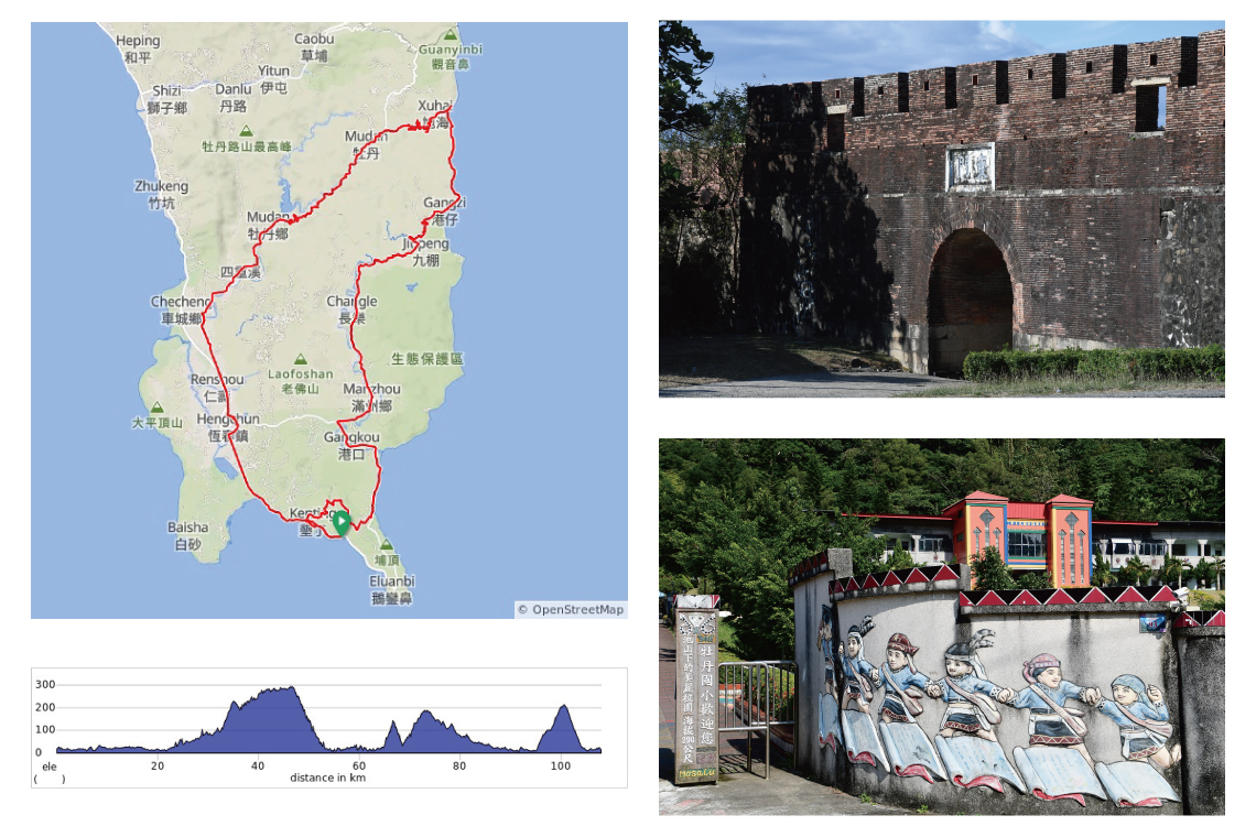恒春半島を満喫する約105kmのサイクリング。獲得標高も約1,500mと走りごたえのあるコースとなります。「恒春古城」の東門、屏東県最大の「牡丹ダム」や「九棚大砂漠」など、南台湾の重要な史跡や景勝地を訪れます。