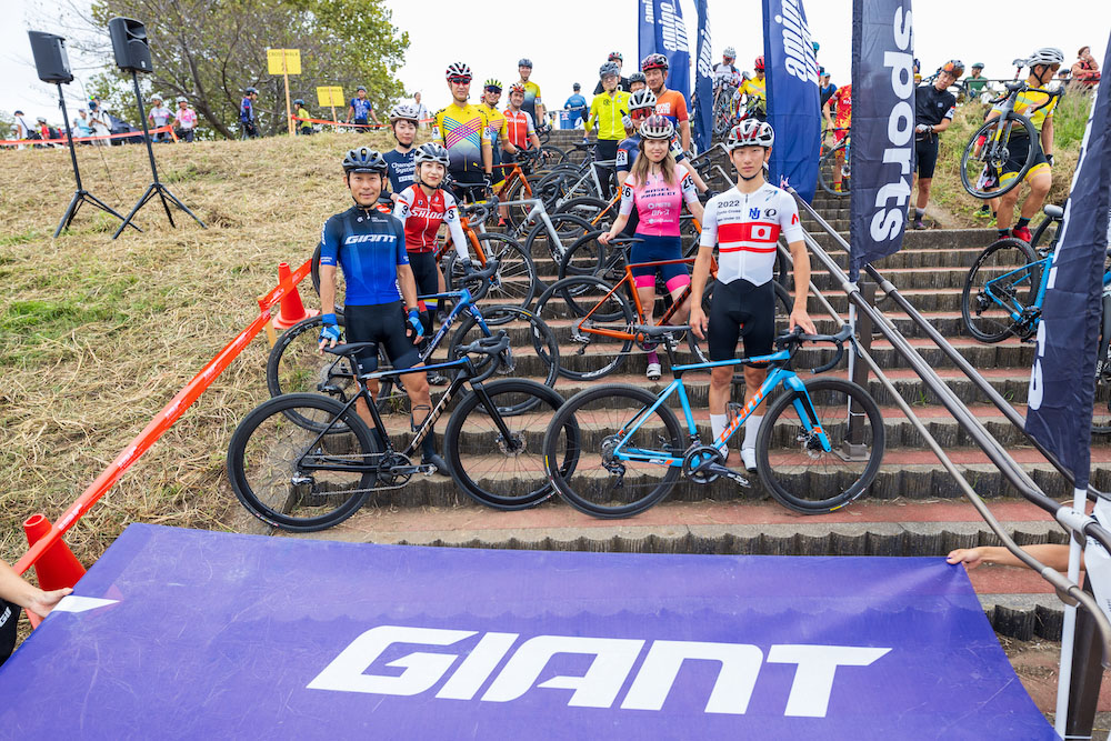 さらに、最終レースの「最速店長&社長選手権」には、GIANTのサポートライダーで2023年シクロクロス全日本U23チャンピオンの柚木伸元選手(日本大学)がゲストで参戦。1分後スタートかつ3周限定のデモンストレーション走行でしたが、国内トップの走りと屈指のテクニックを生かした「バニーホップ(シケインを乗車したままジャンプで越える)」を披露して会場をわかせてくれました。