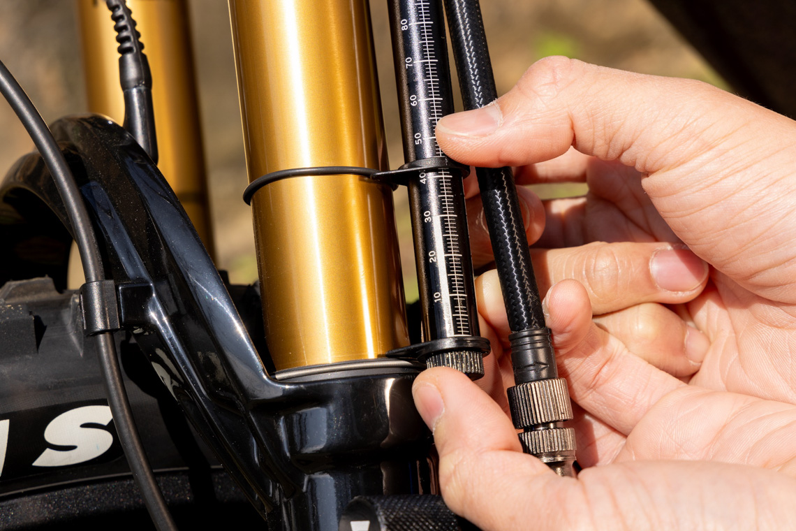 エアーリリース(減圧)ボタンや一体型のスケールを備え、空気圧の微調整からサグ計測まで1本で対応。メンテナンスからフィールドでの微調整まで、誰でも簡単かつ正確なサスペンションセッティングが可能です。