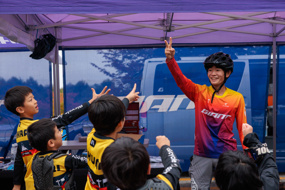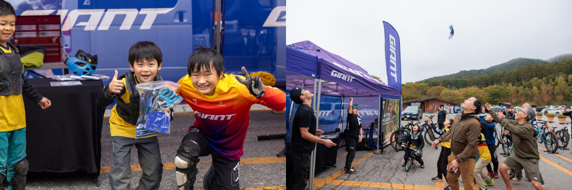 雨は上がり、ブース前はキッズたちを中心に熱気があふれます。GIANT製品や選手から提供された特別なアイテムなどをゲットするべく、参加者は大いに盛り上がりました。笑顔あふれる雰囲気の中、イベントの最後を締めくくりました。