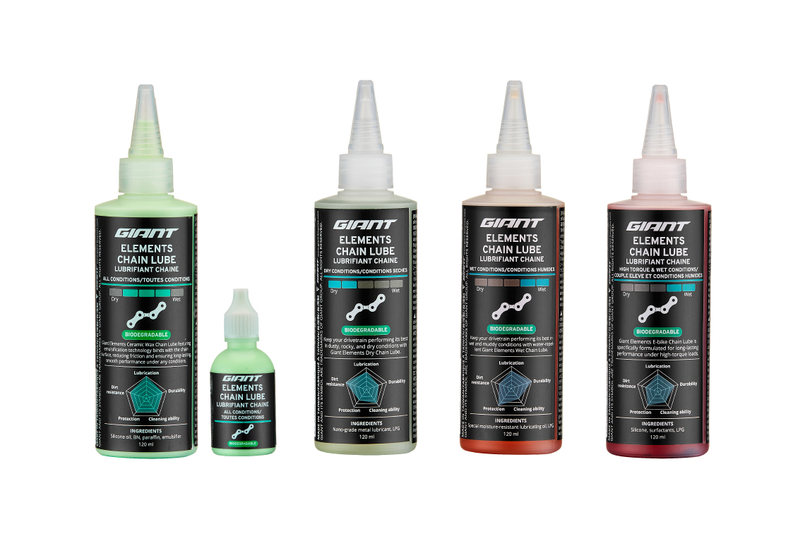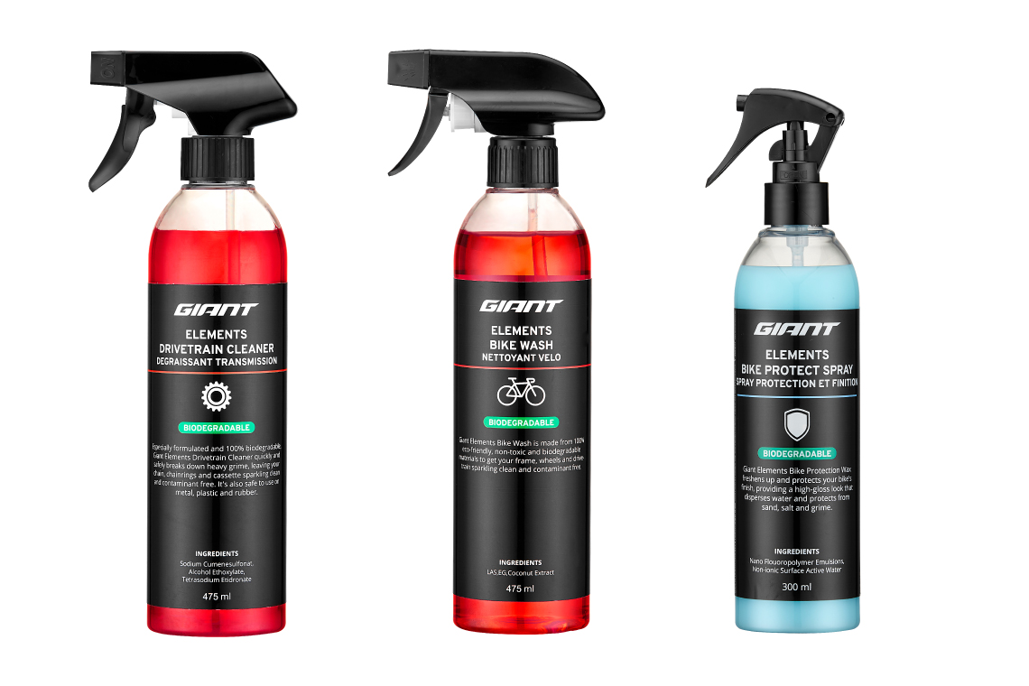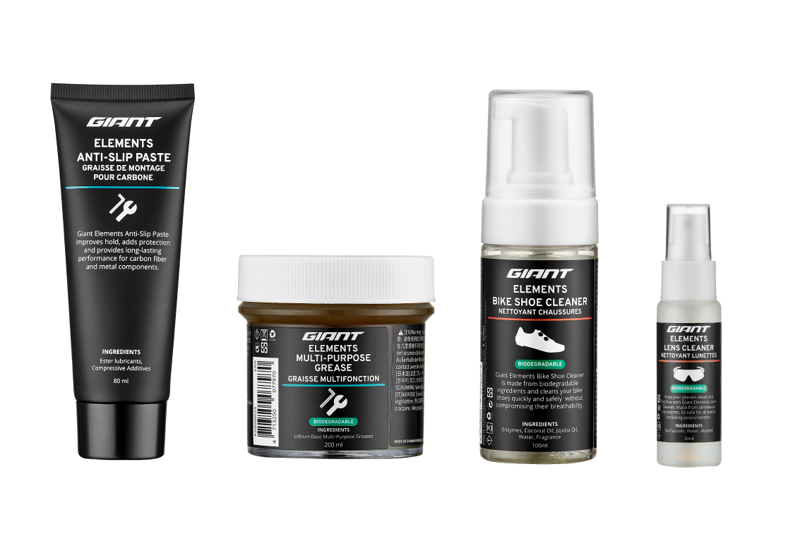GIANT GEARの豊富なラインナップに、12製品で構成される新作ケミカル群「Elements」シリーズと、ブラシなどバイククリーニングツール各種が加わりました。