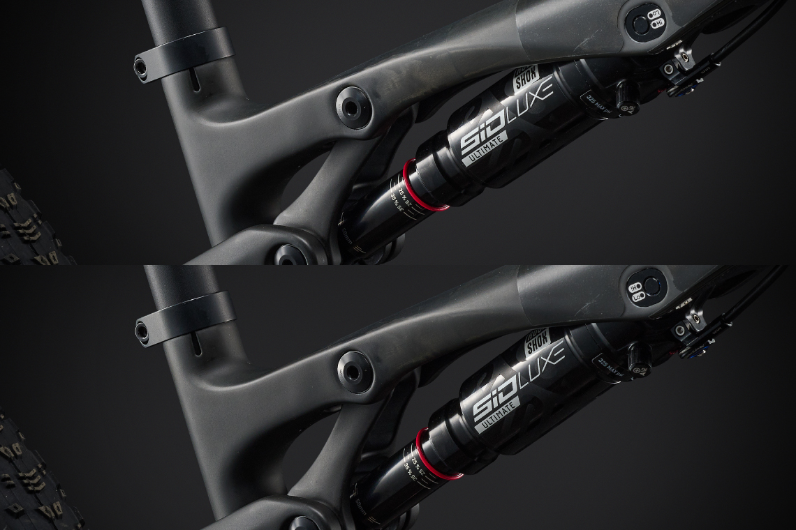 今日のXCバイクに求められる効率性、コントロール性、俊敏なハンドリングを実現するために開発された超軽量サスペンションシステム。120mmストロークのリンク駆動シングルピボットシステムは、トップチューブ下に収められており、Advanced SLカーボン製スイングアームや、Advanced Forged Composite製の上側ロッカーアームと組み合わせることで、極限まで軽量化を図っています。また、リアショック本体をトップチューブ下へと移動したことにより、フロントトライアングルの内側にボトルを2本搭載することが可能に。継続的な補給が必要となるXCマラソンや、長距離トレイルライドでの使い勝手が向上しました。