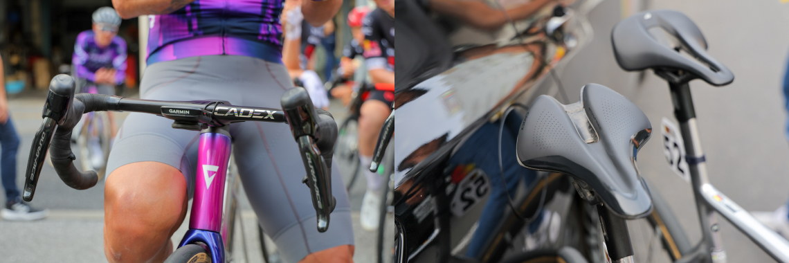 ▲左:ハンドルはステム一体型の「CADEX Aero Integrated Handlebar」を選択 / 右:マシューズ選手は春のクラシックシーズンより「Boost 」サドルを使用中