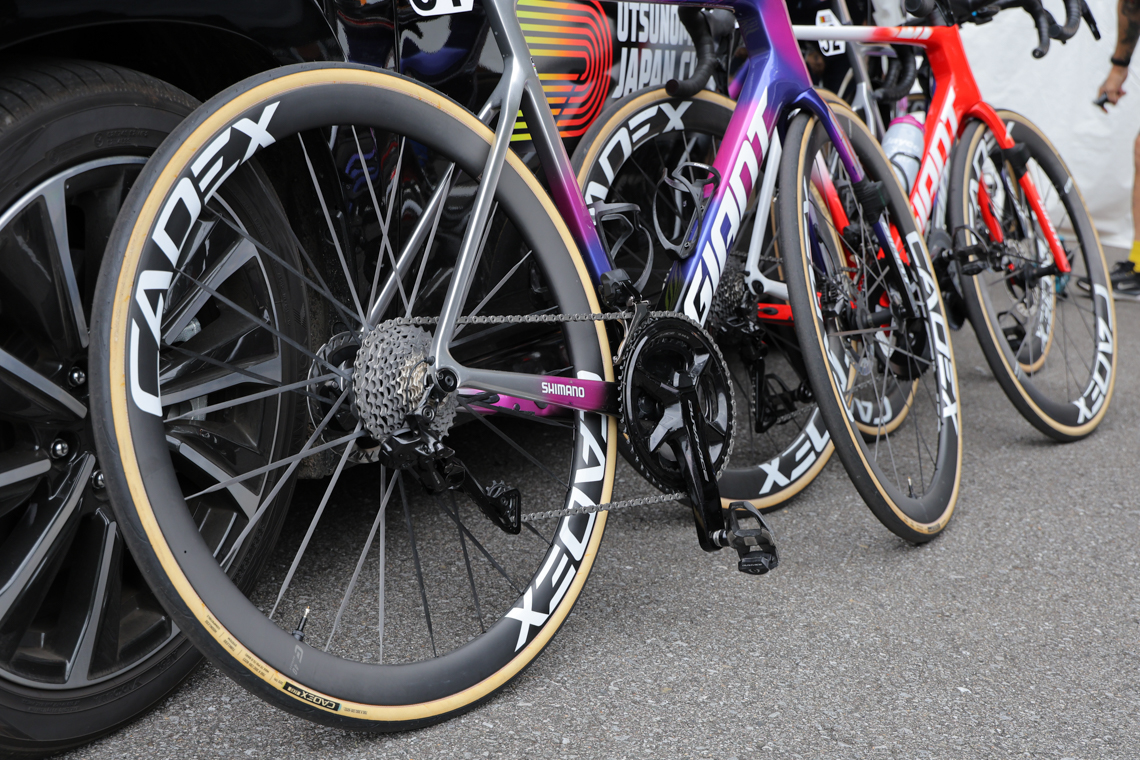 ホイールはコースに応じて使い分けており、平坦路で開催される土曜日のクリテリウムではエアロ性能に長ける「CADEX 50 Ultra」を使用。対して、獲得標高が2,660mに達する日曜日のロードレースでは、ロードホイールとしてブランド史上最軽量を実現した「CADEX Max 40」へと変更しました。