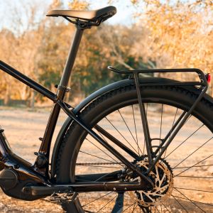 Wordt geleverd met spatborden, verlichting, een bagagedrager en een gereedschapsoplossing gemonteerd op de bovenbuis.