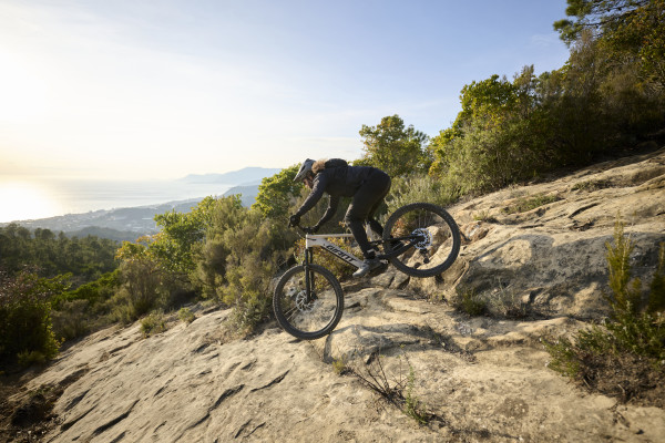 Single-pivot suspension system with 140mm of smooth, active rear travel for greater control on technical trails. Updated design results in less rear triangle deformation and higher anti-rise performance for greater chassis stability and balanced geometry under braking forces.