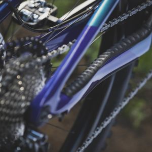 Drive-side chainstay and downtube feature built-in protection against rocks and debris. A clear 3M protective strip on the underside of the headtube/downtube junction protects the frame when it’s loaded onto a shuttle vehicle.
