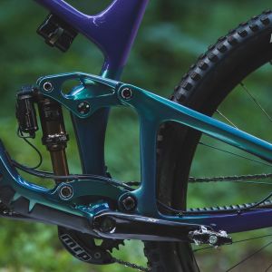 Integrated shock mount produces a lower leverage ratio for increased pedaling and braking efficiency, plus a lower center of gravity and shorter chainstays for improved handling, climbing and agility.