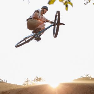 I’m originally from the suburbs of Chicago and have been living in Los Angeles for the past 15 years. Growing up, I was introduced to the sport by riding off a piece of plywood propped up by some bricks in front of my home. That led to me traveling all over the country, going to BMX contests and exploring new cities with friends I met through BMX. After dealing with injuries year after year from riding BMX, it was a natural progression to “big wheel bikes.” I still feel like a kid in front of my childhood home when I’m out on the road or trail.